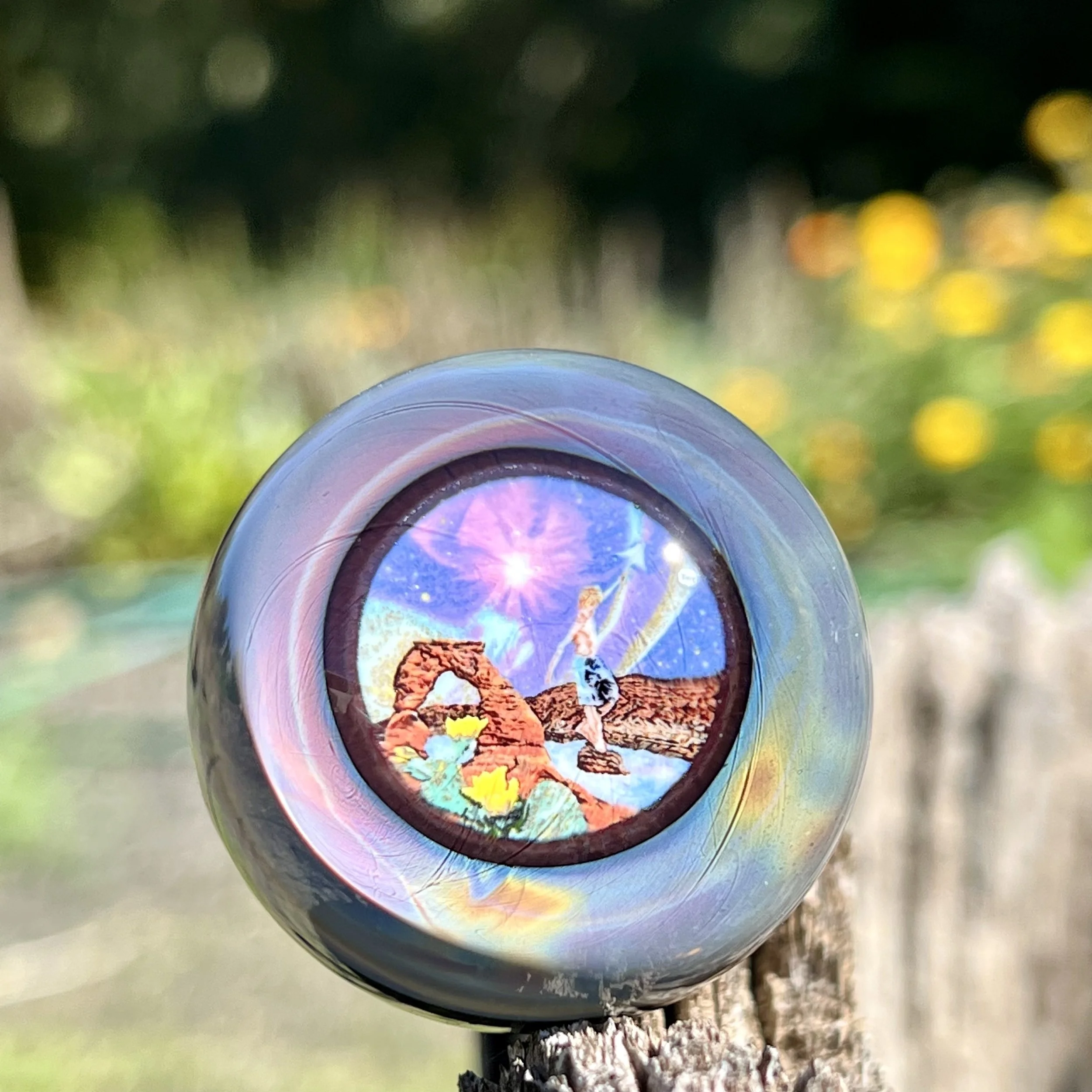 Unique Cobalt Silver Opal color backing on this 1.5” marble. Sig coin on reverse: Bent Jorgenson 2023 Sold.